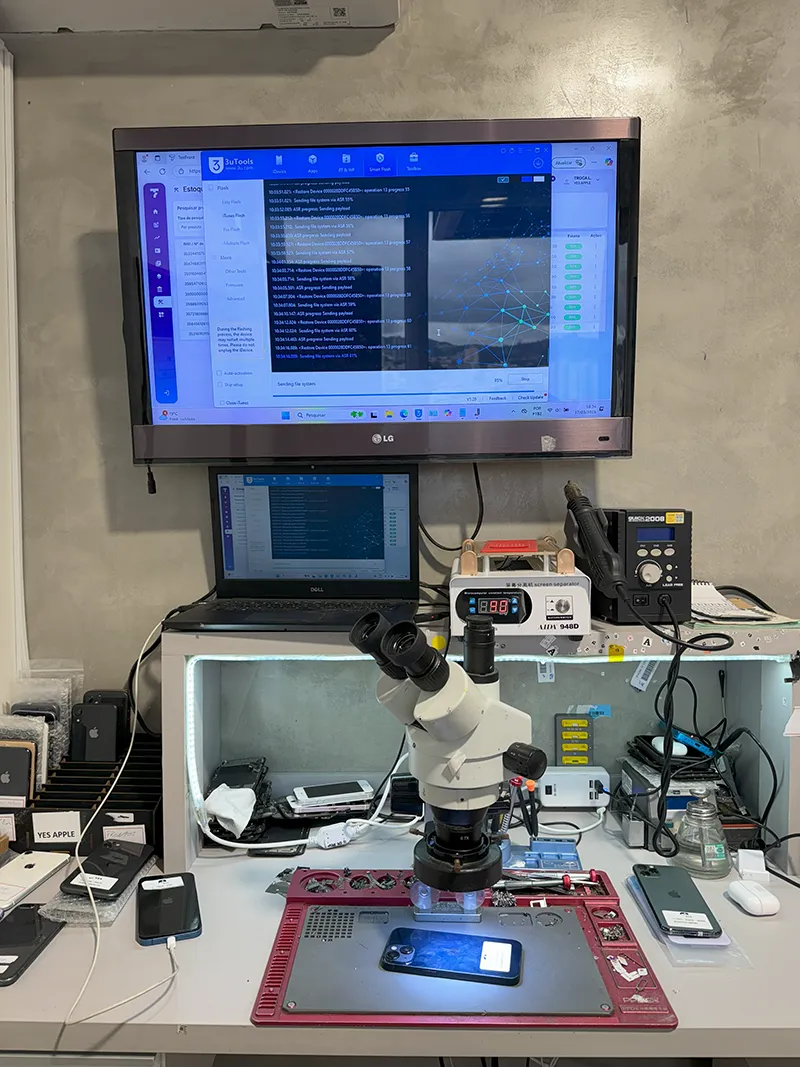 Seja qual for o problema do seu iPhone, nossa equipe de especialistas está pronta para ajudar! Realizamos desde reparos simples até os mais complexos, sempre com a excelência que você merece.